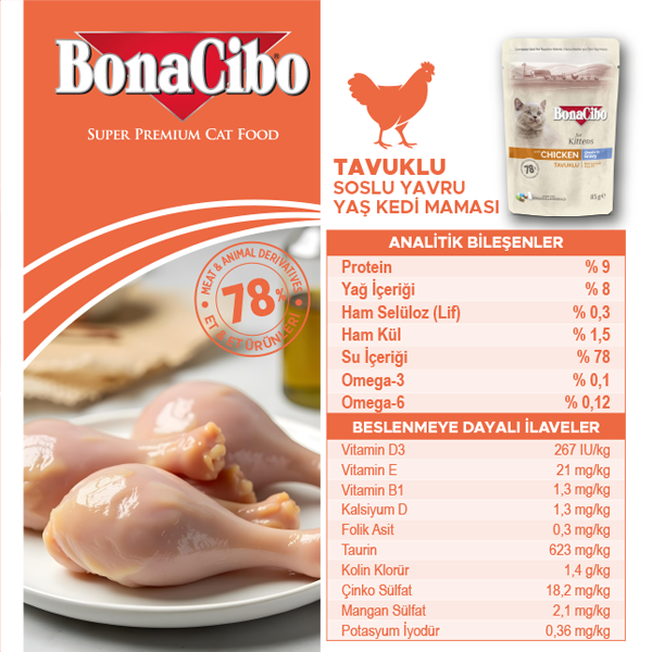 %78 toplam et ve et ürünleri içeriği ile vitamin ve minerallerle zenginleştirilmiş 85 gr poşet yetişkin yaş kedi maması