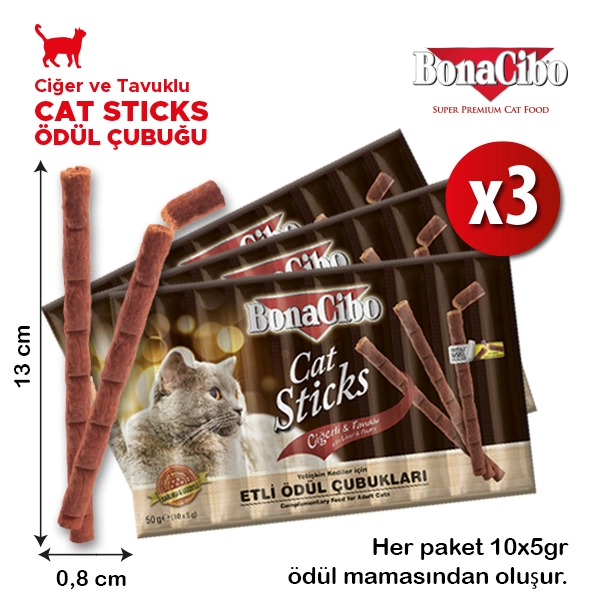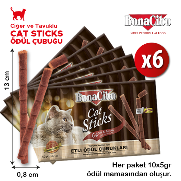 BonaCibo Cat Sticks, Yetişkin kediler için tamamlayıcı mamadır. Kedinizin eğitiminde veya ödül olarak verilebilir.