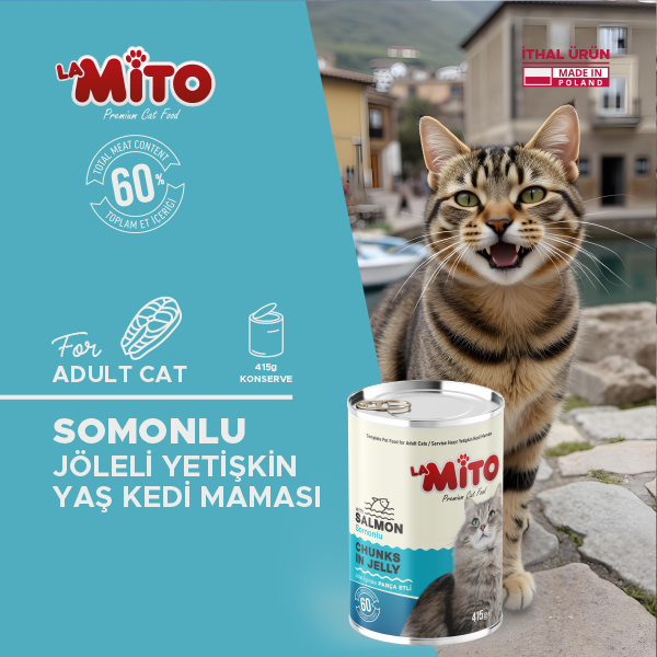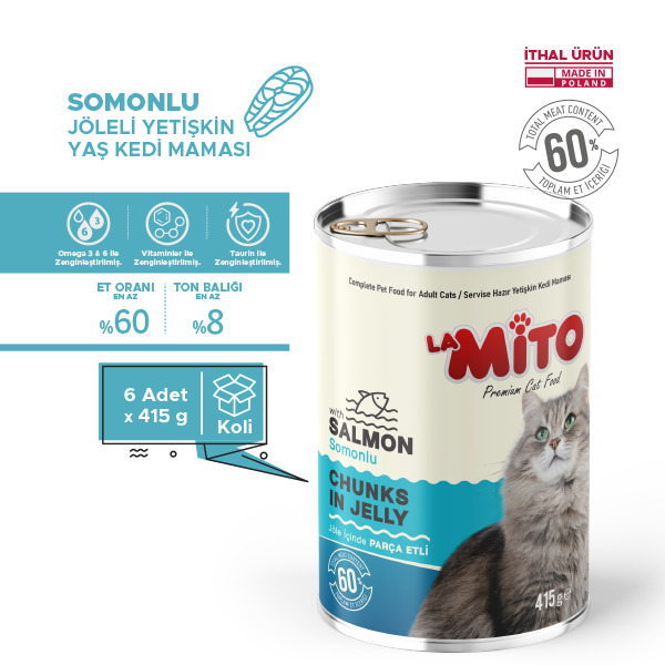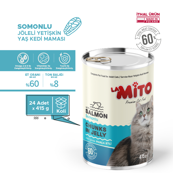 Yetişkin Kediler için Tam Yaş Mama – Jöle İçinde Parça Etli Somonlu