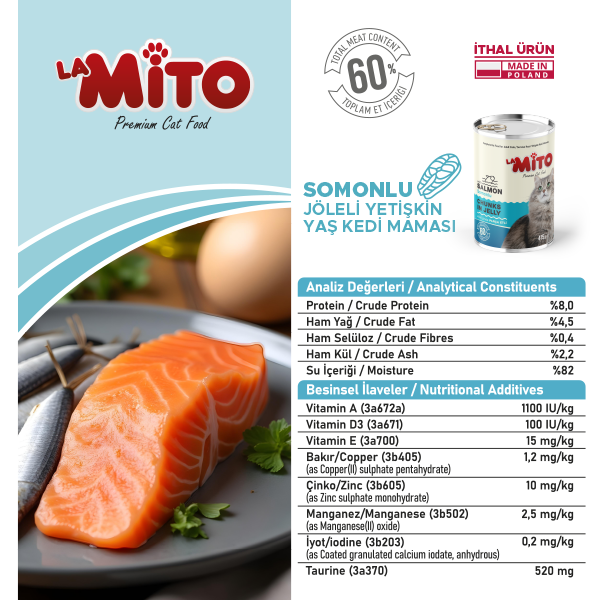 Yetişkin Kediler için Tam Yaş Mama Jöle İçinde Parça Etli Somonlu